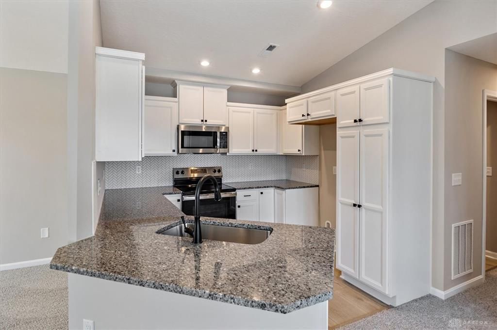 Trendy new Kimbell plan in beautiful Amberwood. Penthouse style living with an open concept design. U-shaped kitchen with beautiful multi-height cabinetry with soft-close hinges, gleaming granite counters, and a counter bar overlooking the oversized family room with a cathedral ceiling. The primary suite features an en suite with a walk-in shower and a walk-in closet. 2nd bedroom and full bathroom.